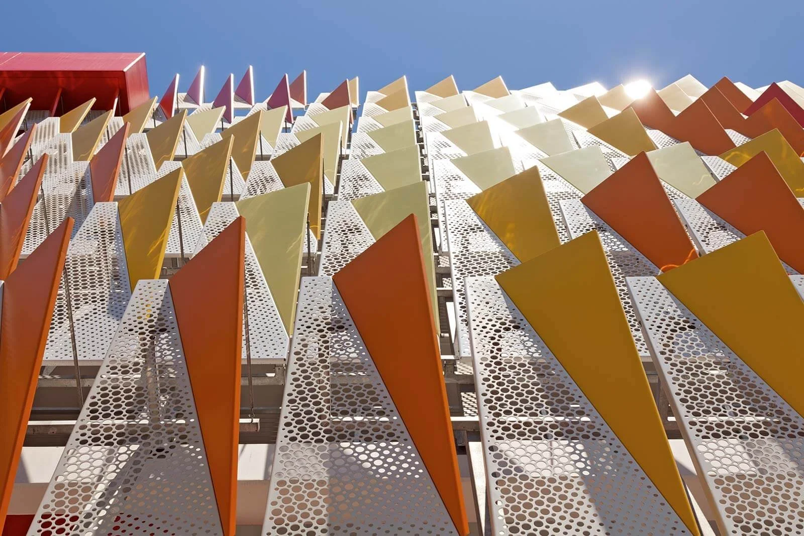 POHL custom sunshades and fins can be a statement feature on the buildings facade. Allowing for daylight, but preventing direct sunlight and glare.